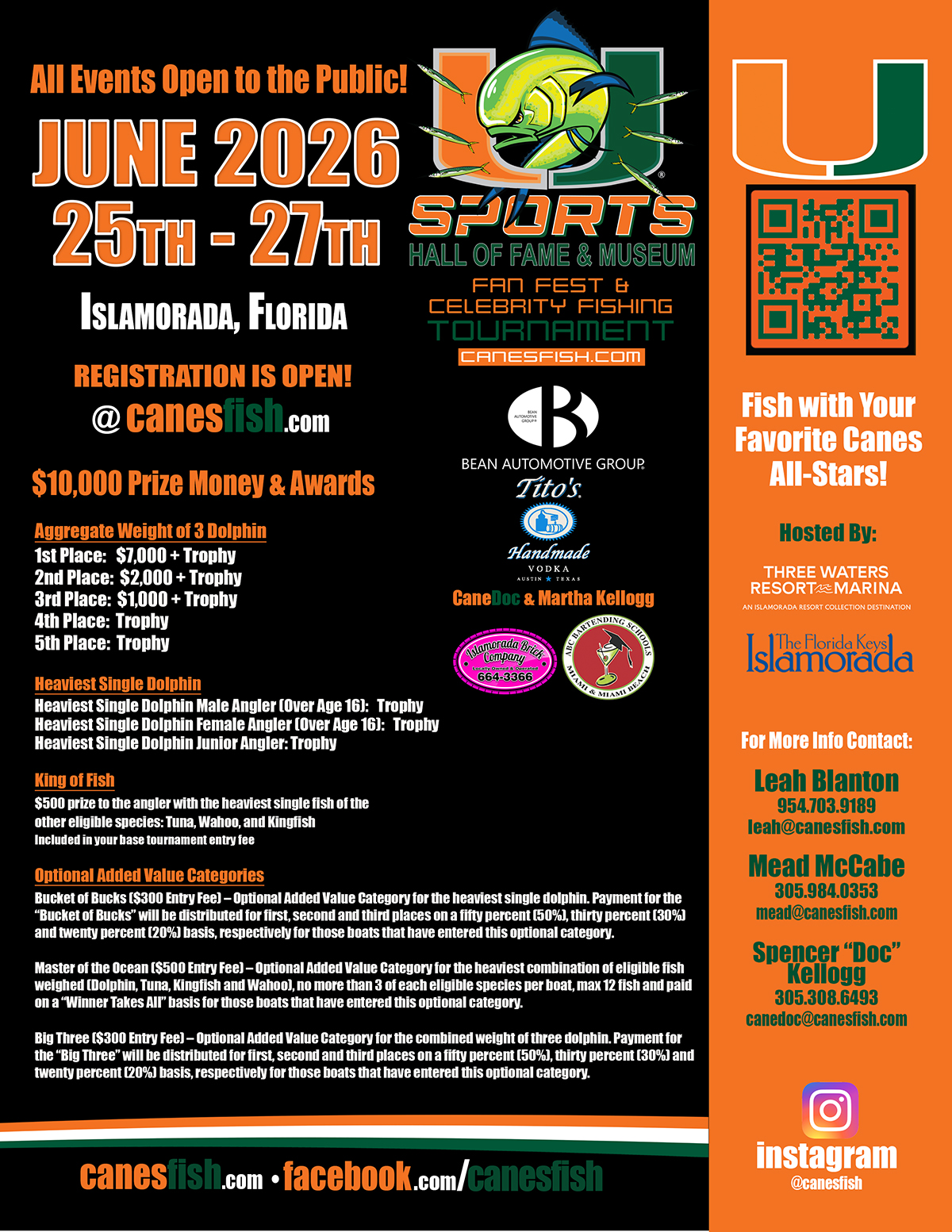 Click below to register for the latest UM Sports Hall of Fame & Museum Fan Fest & Celebrity Fishing Tournament.