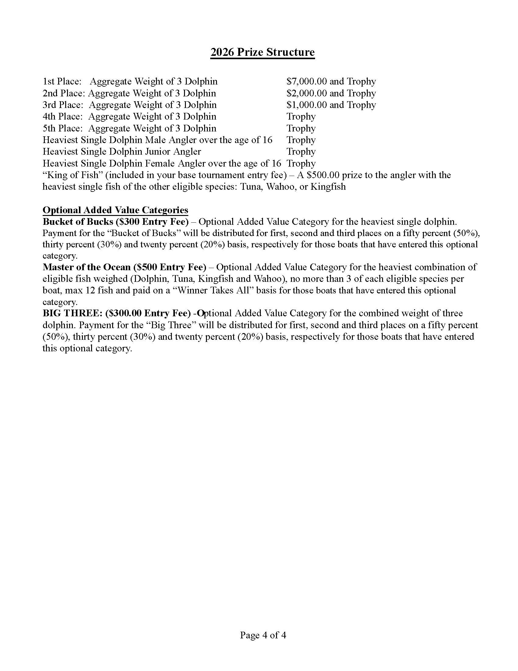 Click the button below to view the Prize Structure for our upcoming event.